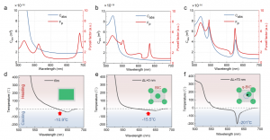 By precisely engineering an asymmetric displacement in a MAPbBr₃ perovskite nanodisk array, the researchers realized two independently tunable q-BIC resonances within a single metasurface. The long-wavelength mode (~625 nm) is spectrally matched to the absorption edge, enabling markedly enhanced pump absorption, while the short-wavelength mode (~540 nm) aligns with the photoluminescence peak and benefits from Purcell enhancement to accelerate radiative recombination. Together, these dual resonances enable simultaneous optimization of the absorption–emission cycle, offering a new structural route to improve laser-cooling efficiency. Coupled carrier-dynamics and thermodynamic modeling predicts an external quantum efficiency as high as 98.8% under continuous-wave excitation, well above the threshold required for anti-Stokes fluorescence cooling. Further thermodynamic simulations predict net cooling from room temperature down to −201 °C, extending below the liquid-nitrogen temperature range.